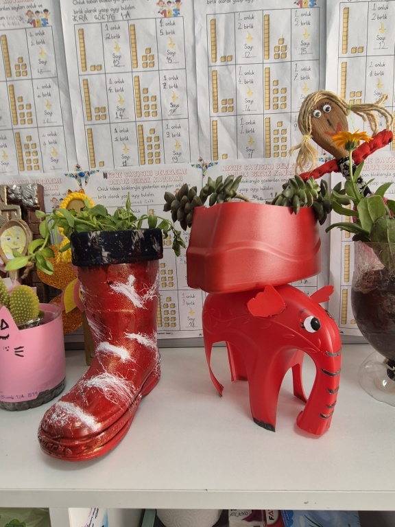 Projede 1- A sınıfı öğrencilerimiz geri dönüşüm ve sürdürülebilirlik ile ilgili bilgi sahibi olurken dönüştürülebilir malzemelerle yeni oluşumlar tasarlayarak teknoloji kullanımı ve yapılacak atölye çalışmaları ile içinde bulundukları gezegeni koruyorlar.